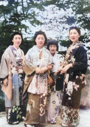 平安神宮の桜の下で・「細雪」のモデルたち (1940年 AI彩色)